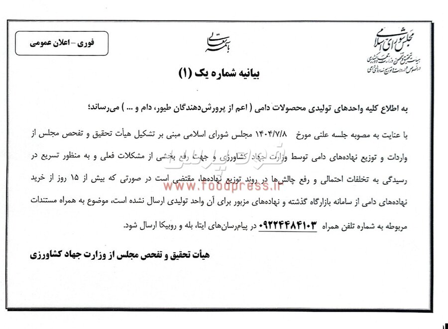 https://foodpress.ir/xkM4 ۱۶ آذر ۱۴۰۴ - ۱۵:۲۸ کد مطلب 56667 کشاورزی ۸ نفر ۱۶ آذر ۱۴۰۴ - ۱۵:۲۸ نخستین بیانیه هیات تحقیق و تفحص مجلس در زمینه نهاده های دامی منتشر شد +تصویر نخستین بیانیه هیات تحقیق و تفحص مجلس در زمینه نهاده های دامی منتشر شد. کد مطلب 56667 برچسبها هیات تحقیق و تفحص نهاده های دامی واردات نهاده های دامی